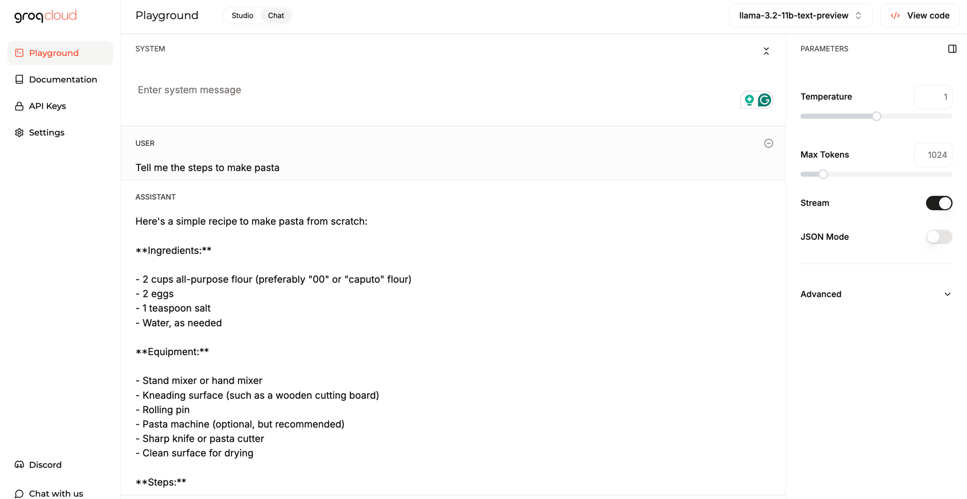 Once you've chosen the platform that best fits your needs, you can now dive into the world of Llama 3.2 and experience its groundbreaking capabilities firsthand! For an easy way to experiment with the models, head over to the Groq Playground, where you can interact with the models in real-time.