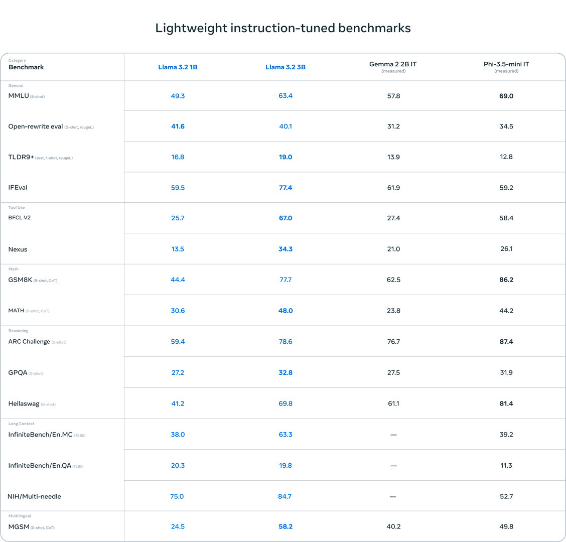 The Llama 3.2 1B and 3B models are built to perform efficiently on devices with limited computing power, such as mobile phones and edge devices. The 3B model handles general language tasks very well, making it ideal for quick responses in mobile apps and customer support systems. It also shows strong results in using tools and reasoning, which makes it great for virtual assistants and decision-making tasks.