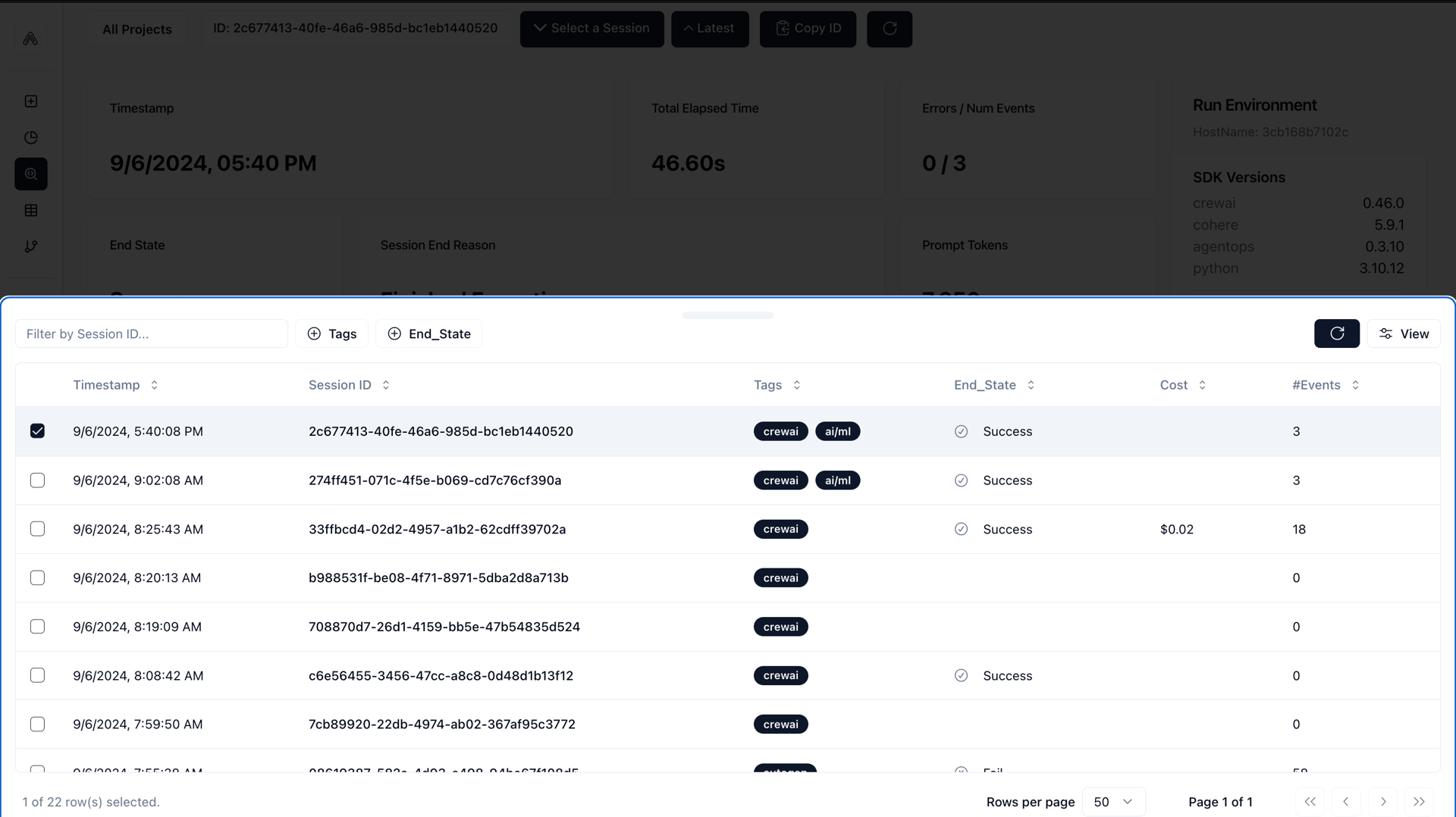 Session Selection in the AgentOps Dashboard