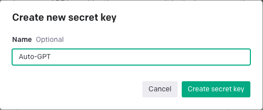 You can then give a name to your key, something like AutoGPT and click create 🆕