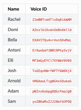 or you can use the ID of the voices intead, you can get the ID's from the list below📋