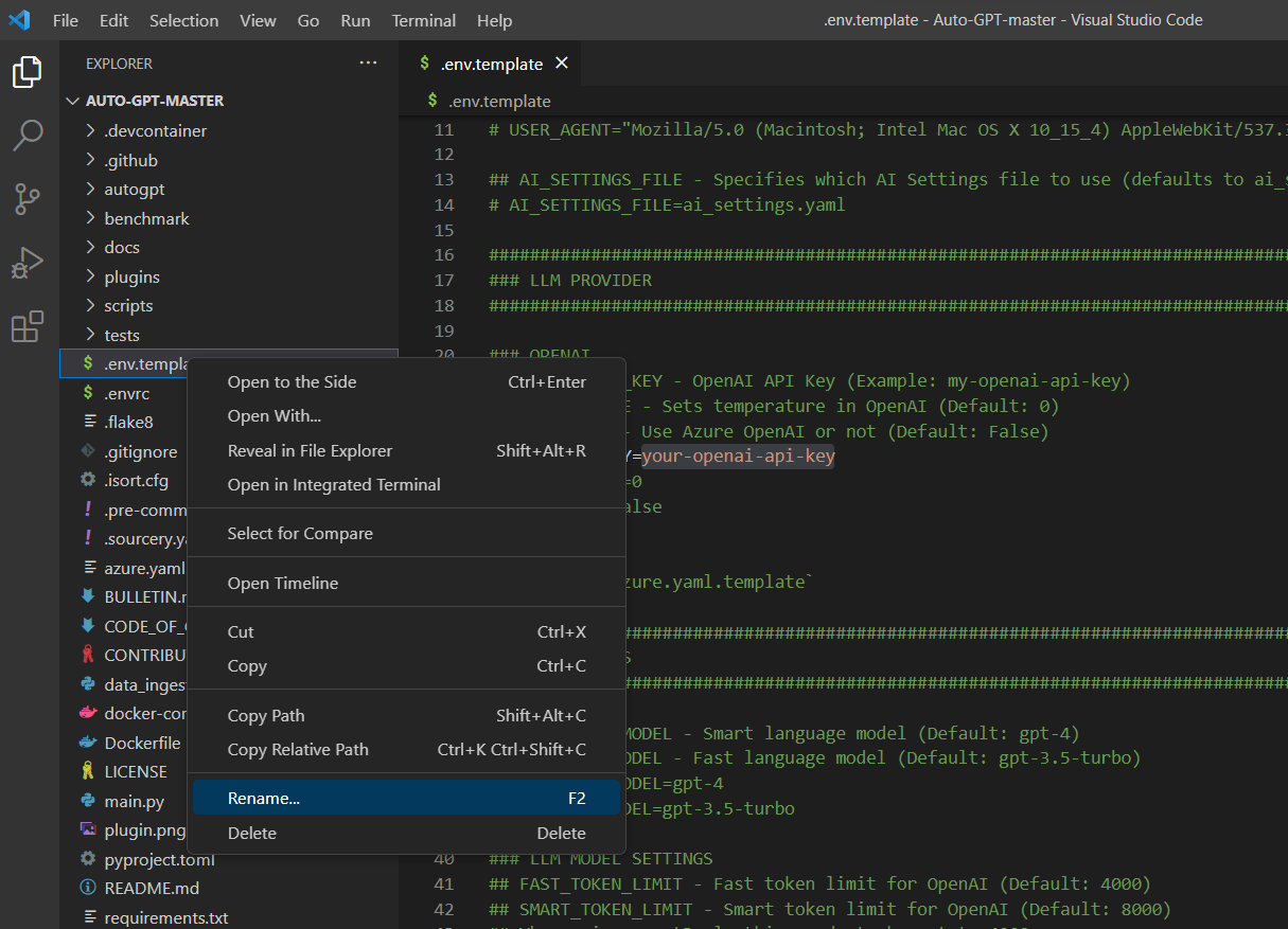 Press F2 or right-click on the .env.template and rename it to .env
