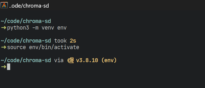 Let's dive into the code! Our first step is to set up our project directory, which we'll name chroma-sd. Open your favorite terminal and navigate to your projects directory. Then, create and move into the project directory with the following commands: