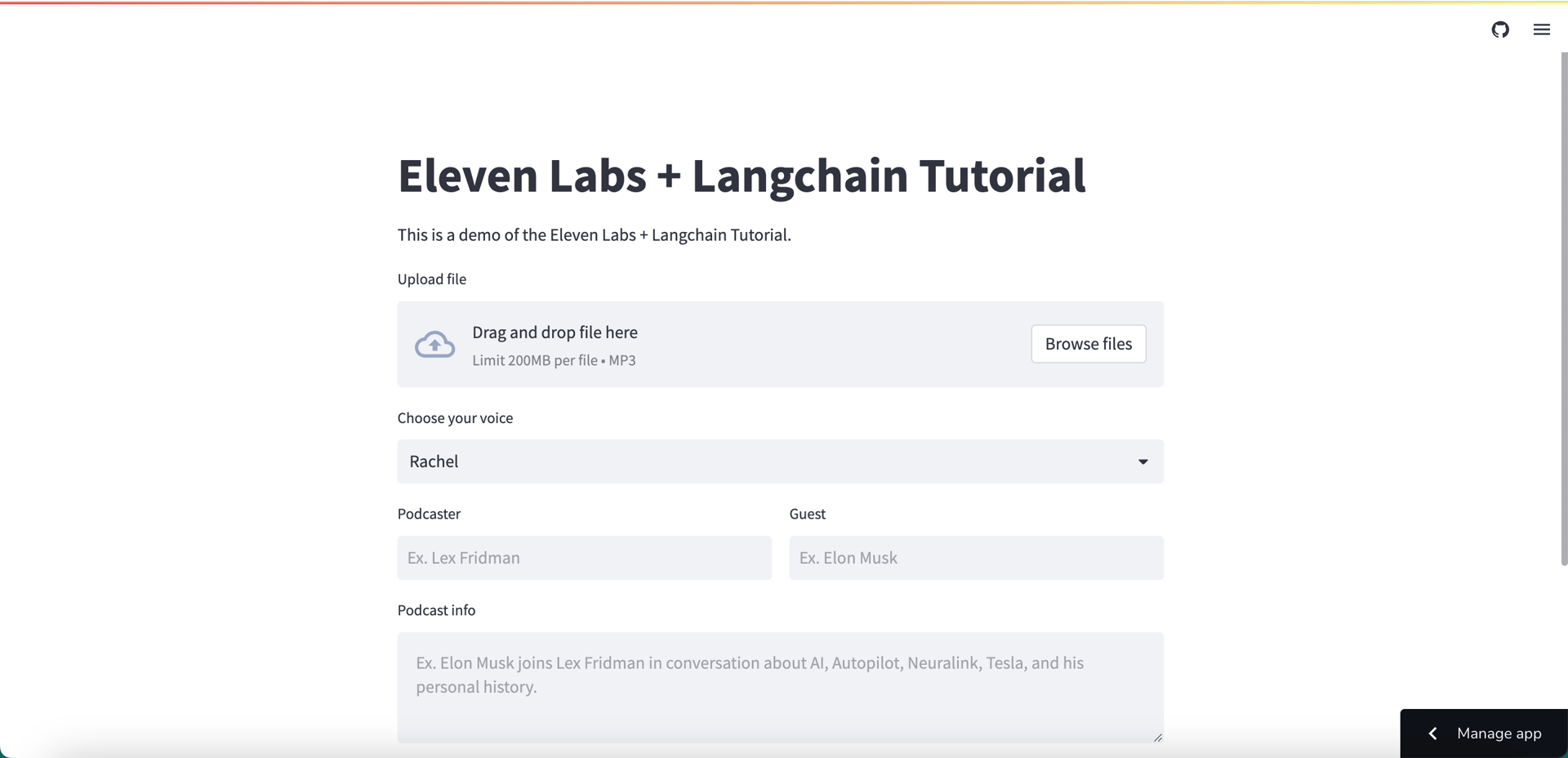 In this tutorial, we will build and deploy a Podcast Generation app using ElevenLabs and Langchain. We will use Streamlit (pure Python framework) to build the web app. Sit back, relax, enjoy the tutorial and don't forget to make a cup of coffee ☕️.
