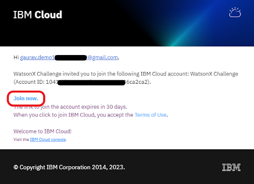 Follow the instructions to access the IBM Cloud account provisioned to be used in this hackathon.