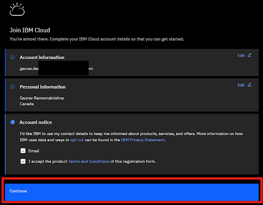 If it’s your first time setting up an IBM Cloud account: