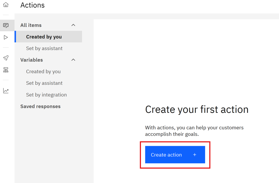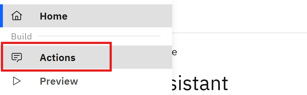 On your assistant's home page, select Actions from the left navigation panel.