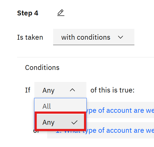 Applying conditions Change from All to Any