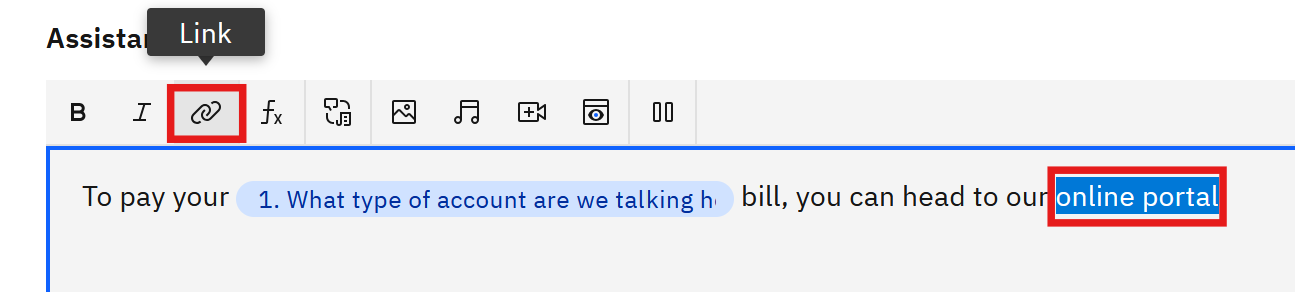 Create a step with text like, “To pay your bill, you can head to our online portal.”