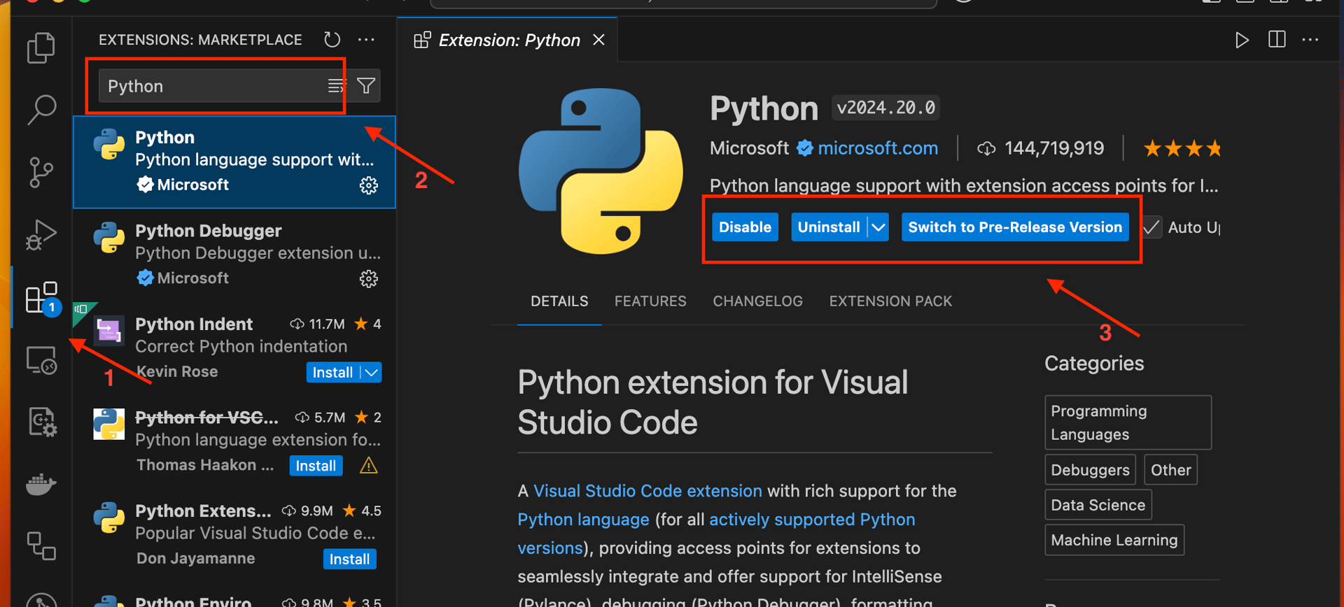 Python: Select Interpreterand press Enter. - Choose the Python 3.x version you installed earlier.
