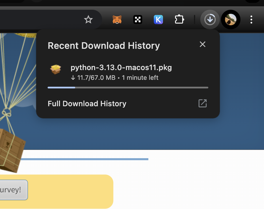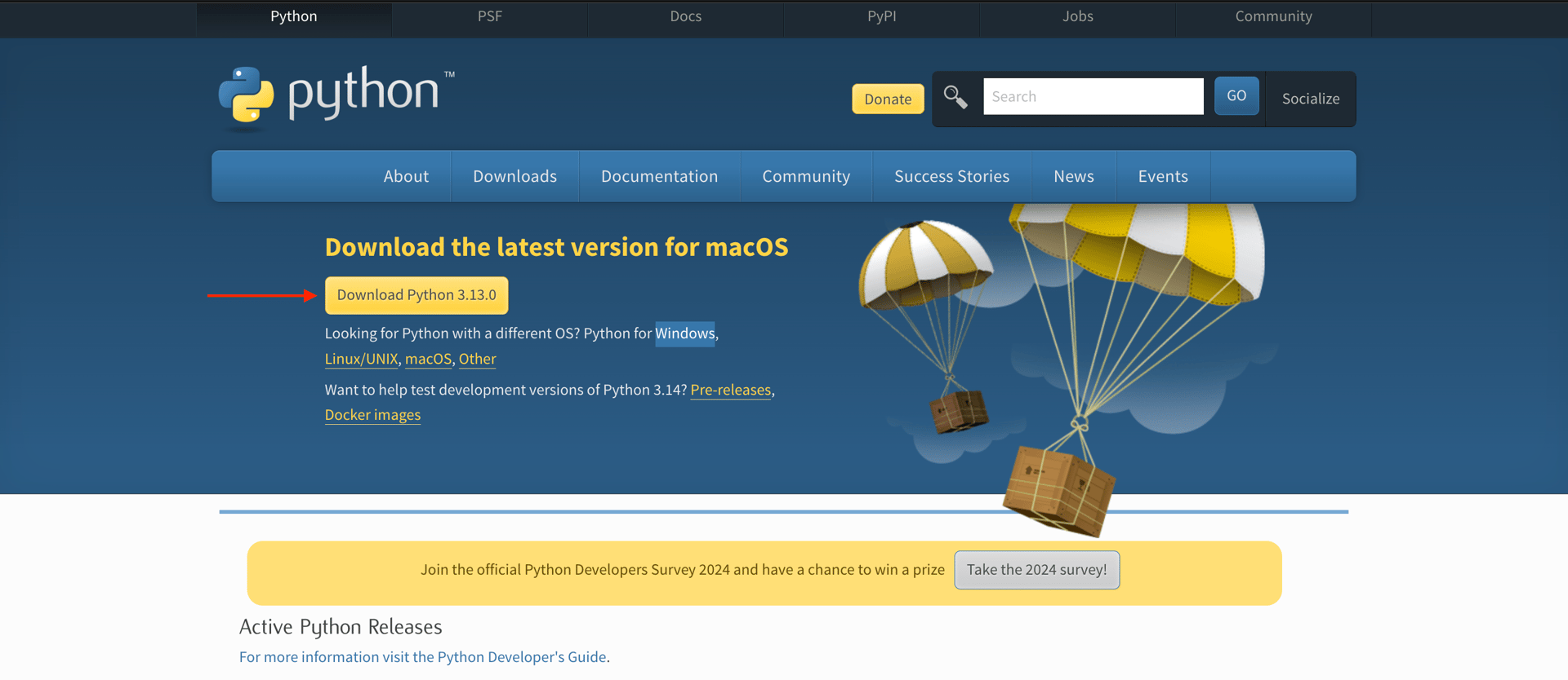 - Click the Download Python button. The website will automatically detect the right version for your operating system.