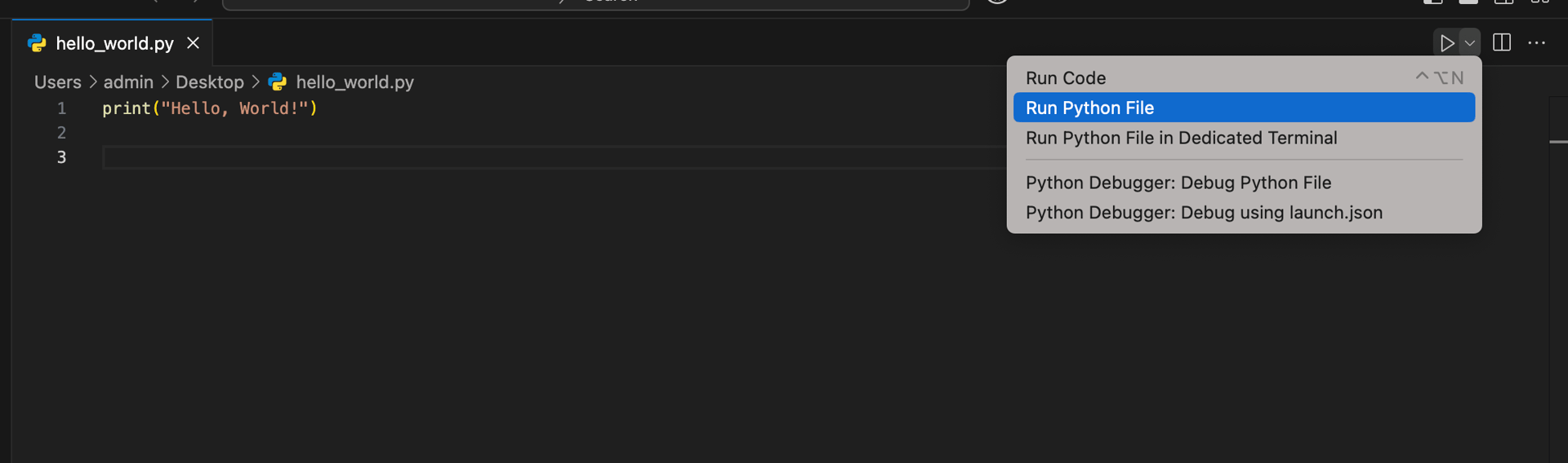 hello_world.pyand ensure it ends with.py, which tells the computer it’s a Python file.