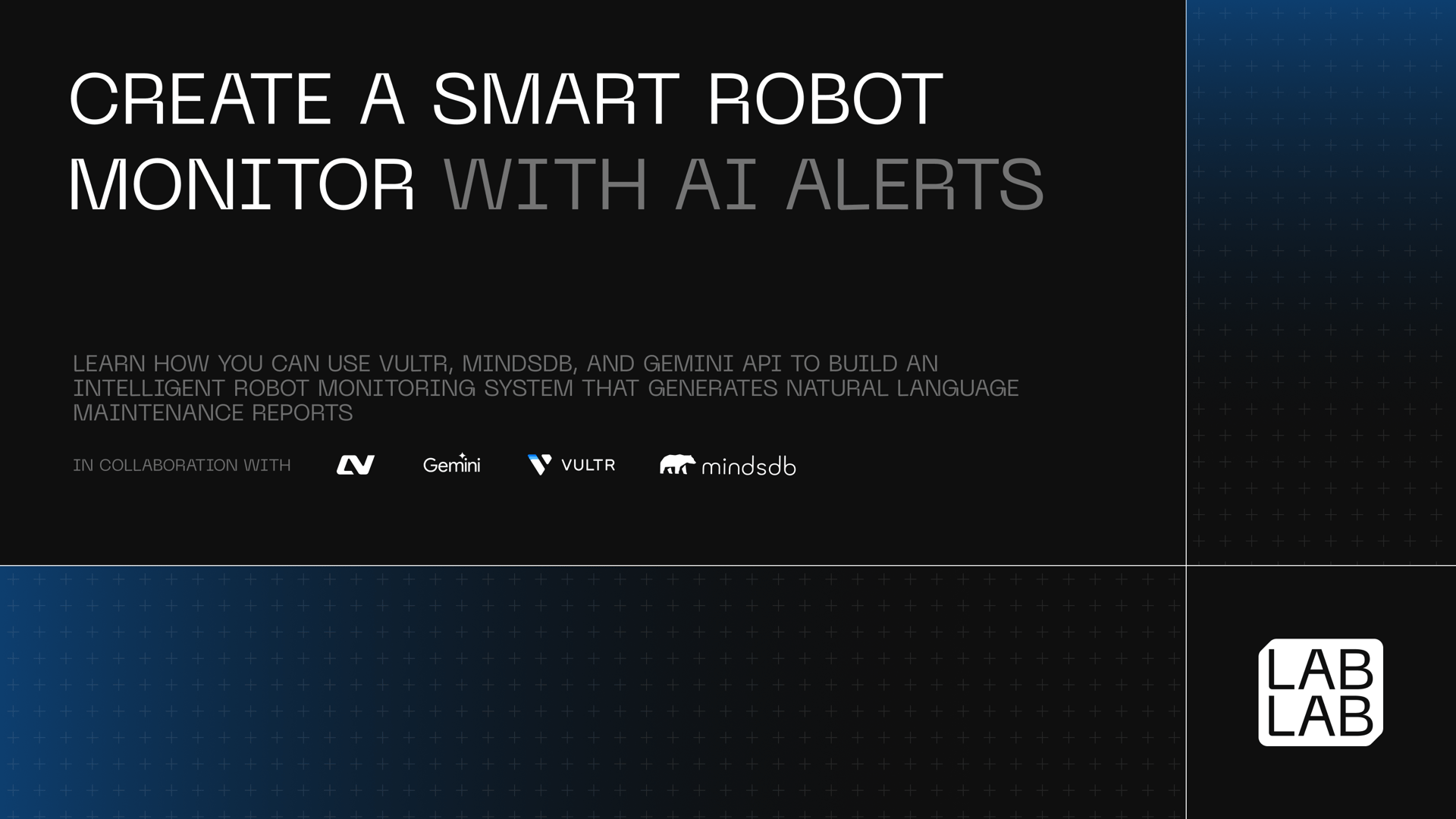 This tutorial demonstrates how to integrate Vultr, MindsDB, and Gemini API to build an intelligent robot monitoring system that generates natural language maintenance reports. You'll simulate robot telemetry, store it in PostgreSQL, and use AI to generate maintenance reports and a chatbot that answers questions about your fleet.