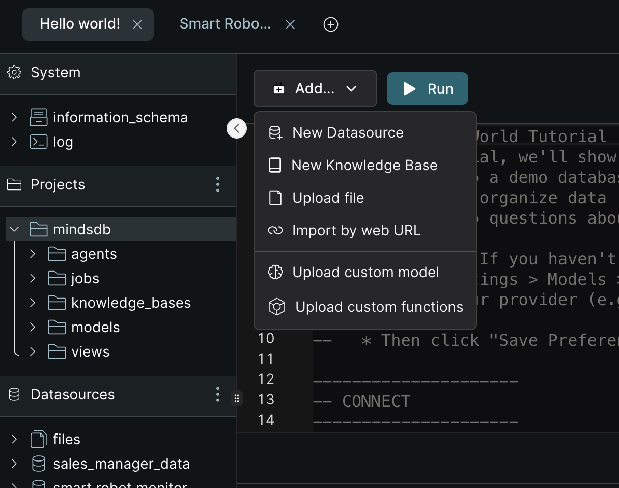 - Repository – Clone smart-robot-monitor-with-AI-alerts to get the full project (simulator, database schema, MindsDB scripts,