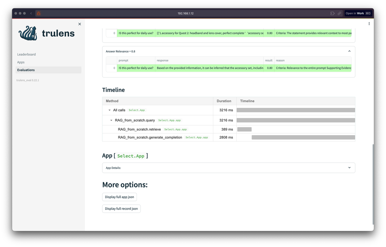 You'll be greeted with a dashboard full of stats and insights, all thanks to the magic happening behind the scenes with TruLens.
