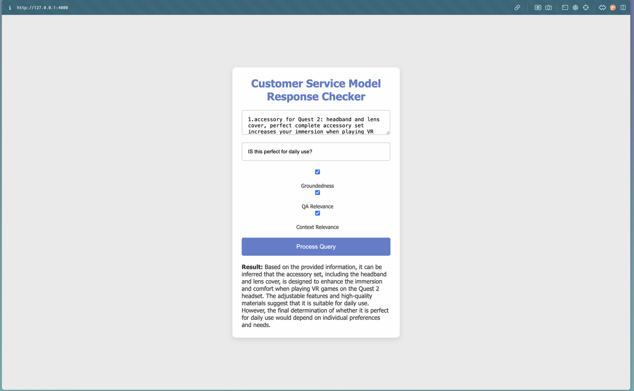 Imagine walking into a cozy café with a clear sign that says "Customer Service Model Response Checker". That's our application's title, sitting right at the top of the page, giving off a welcoming vibe that says, "You're in the right place."