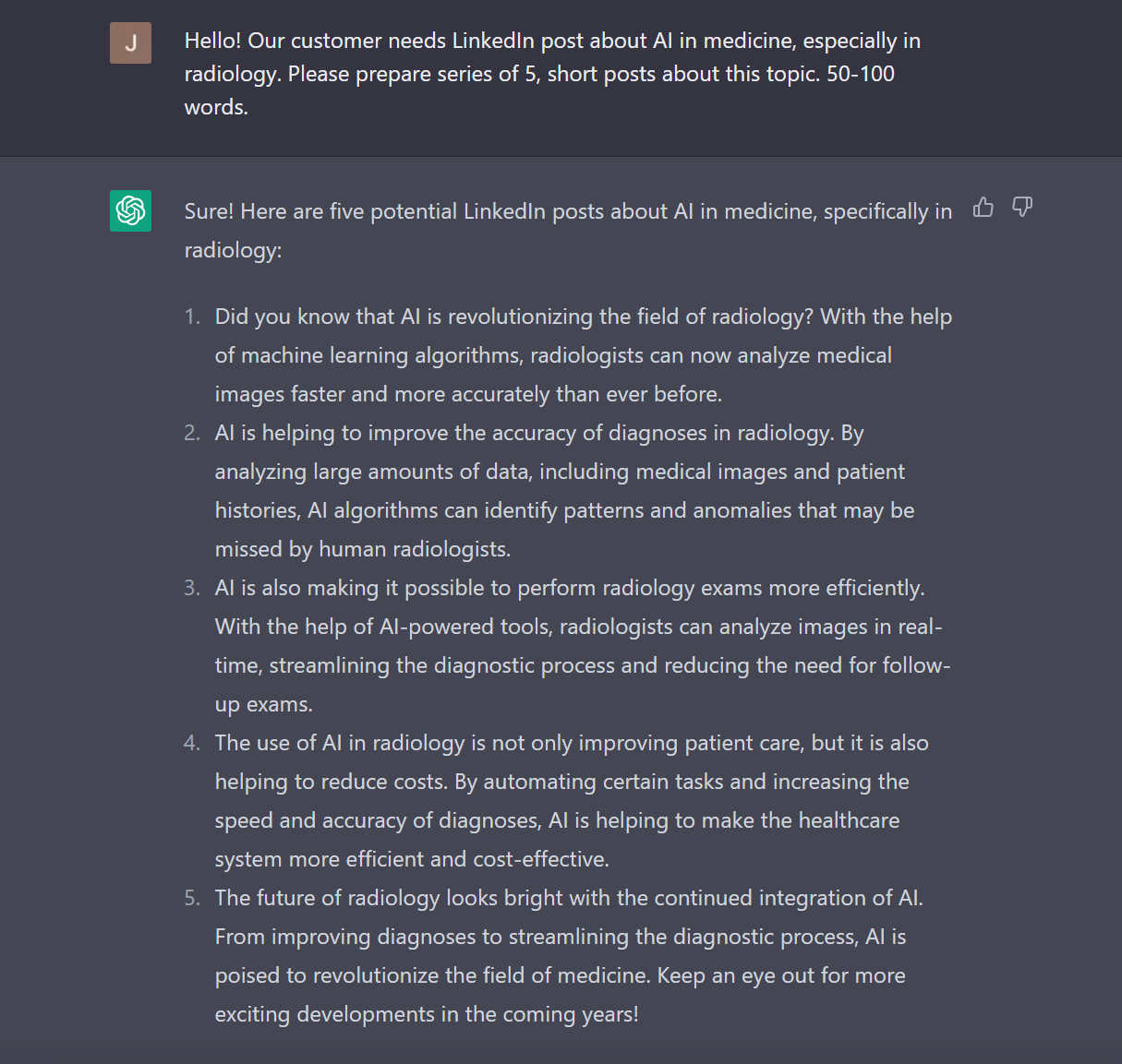 WOW, great! Now let's try to generate posts for our client. Now we’re an AI company focused on radiology. Let's start!