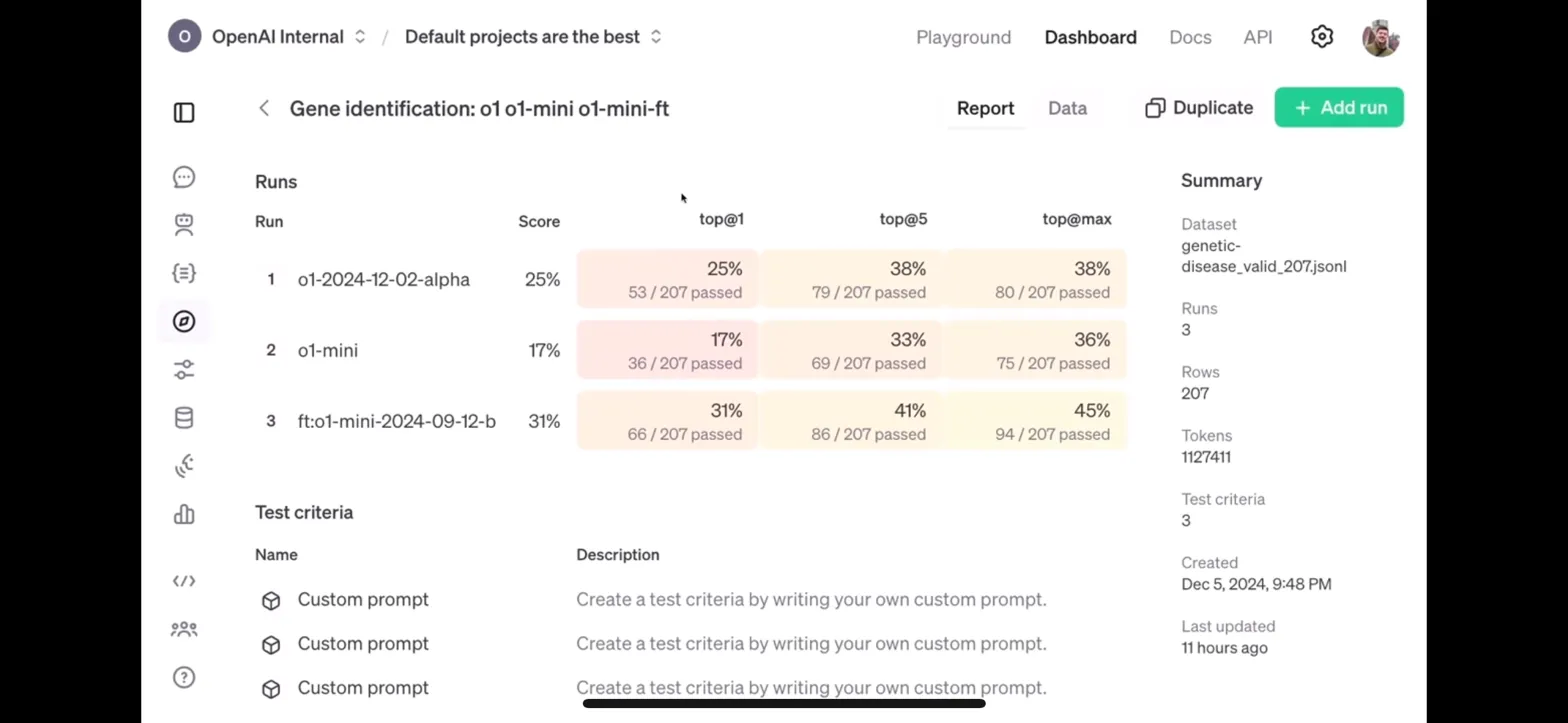The technical demonstration proved particularly compelling: O1-mini, their smaller and faster model, was enhanced to outperform the full O1 model on specialized tasks. What makes this remarkable is the efficiency , these improvements required only dozens of examples, not the thousands typically needed for traditional fine-tuning approaches. For machine learning practitioners, this efficiency challenges fundamental assumptions about model optimization and specialization.