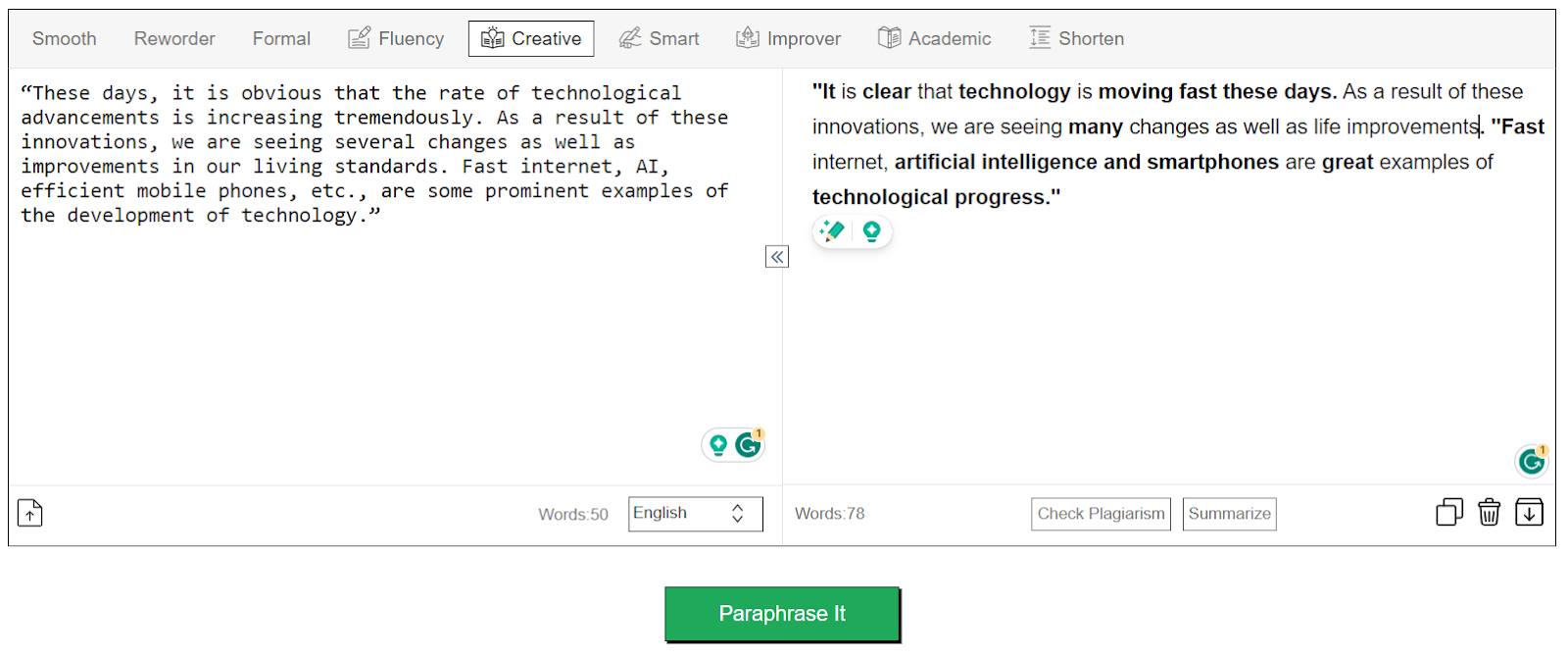 - The AI paraphraser prefers to use simple as well as easily digestible synonyms.