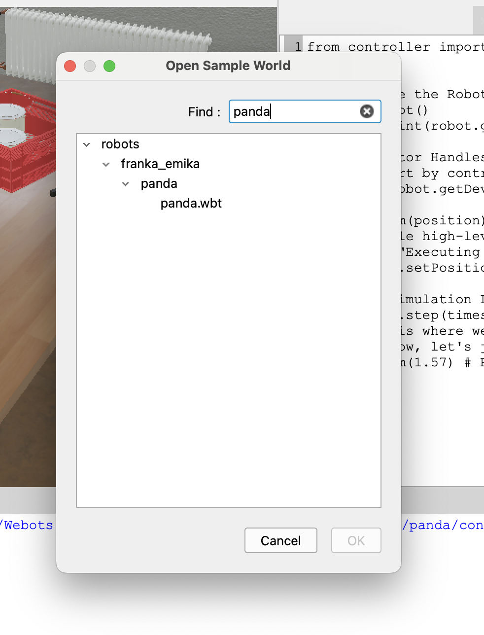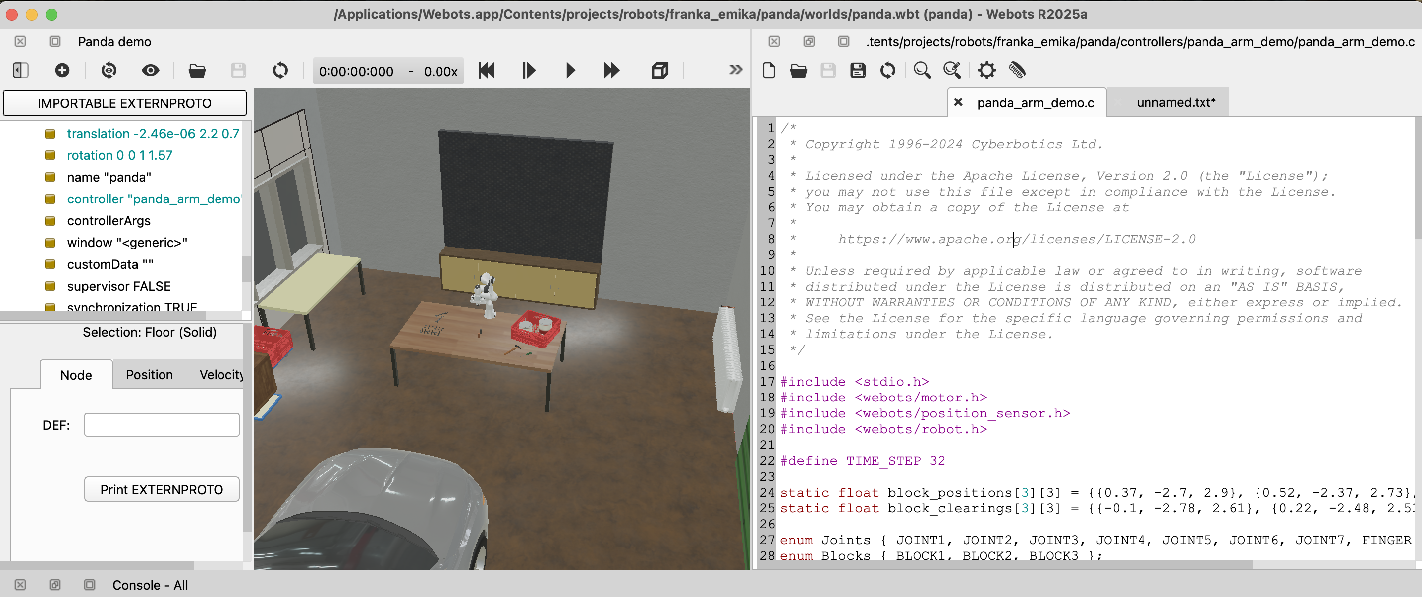 - Setting up Webots with the Franka Emika Panda robot simulation