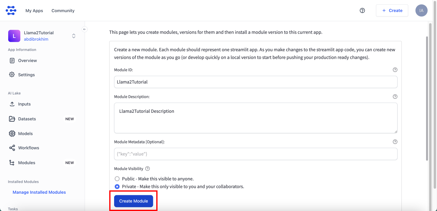 Fill in the required fields and click on the Create Module button.