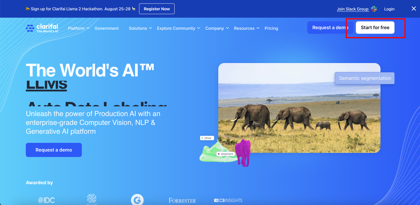 Go to Clarifai and create an account or login if you already have one.