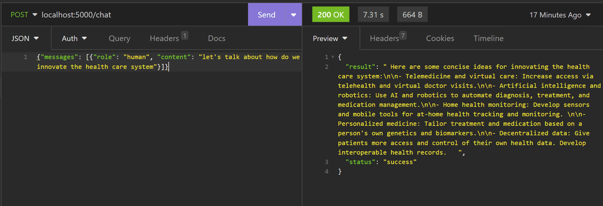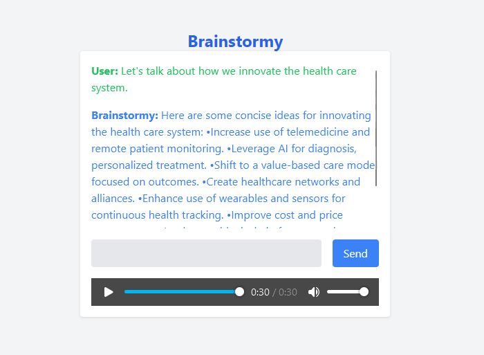 Let's ask our app to brainstorm some idea on how we innovate the health care system. After we're done, click the "Send" button!
