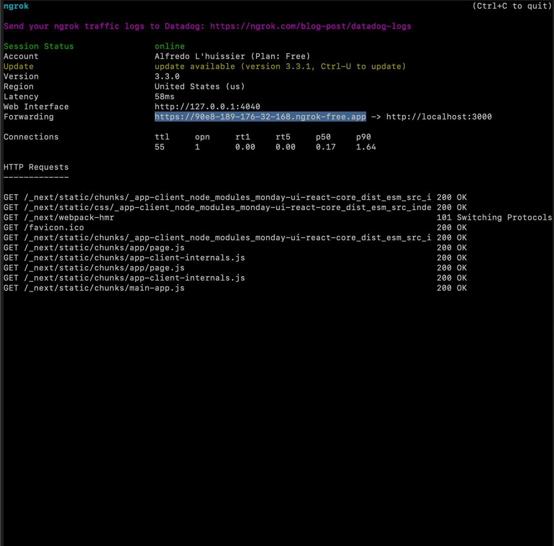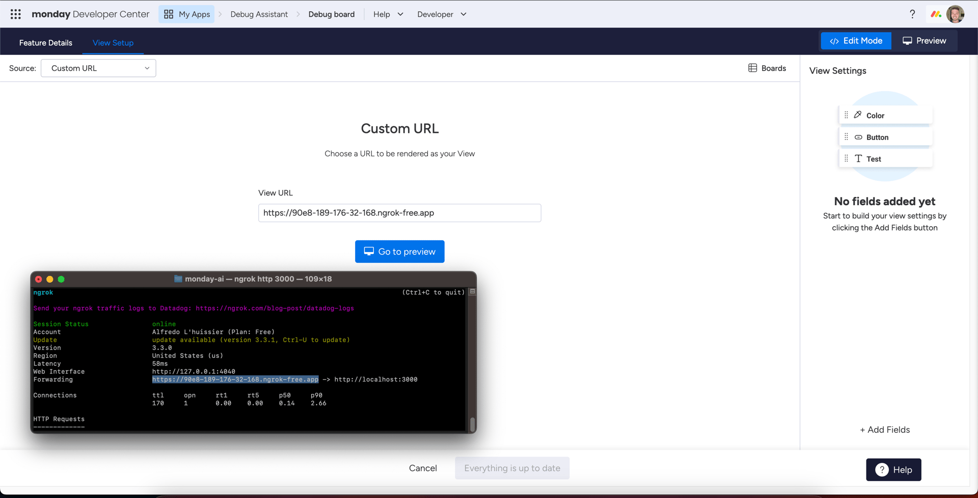 In order to connect this app to Monday, you need to create a tunnel to your local environment.