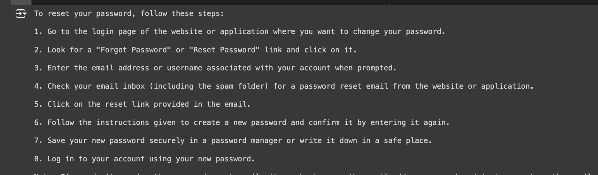HumanMessage(content="How can I reset my password?")