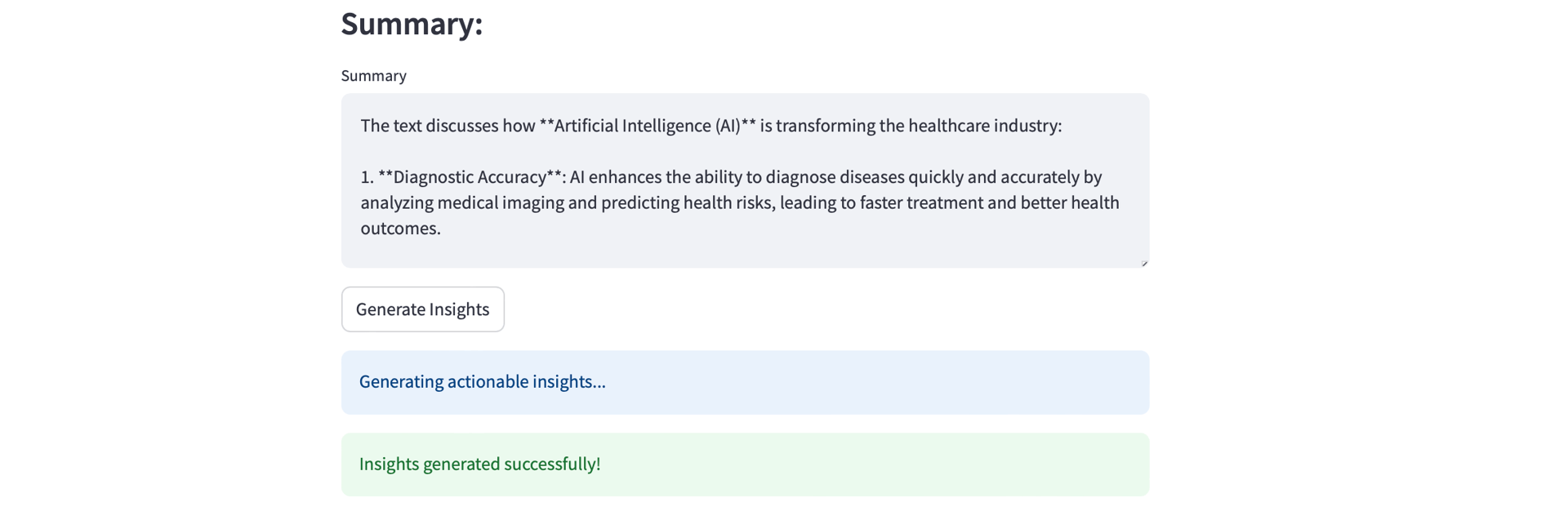 str: Actionable insights derived from the summary.