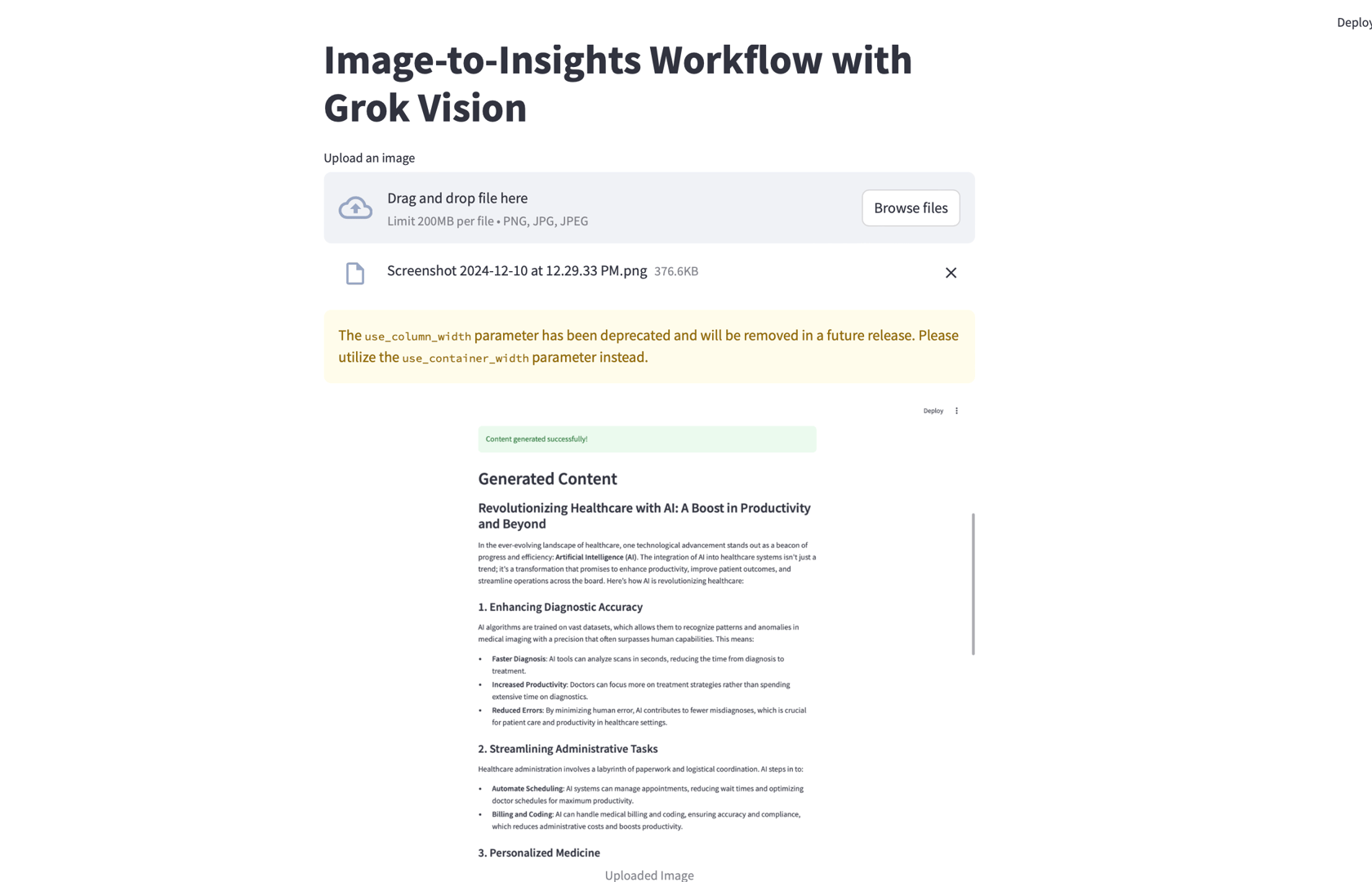In this tutorial, we built an AI-powered application that leverages xAI’s Grok API to extract text from images, summarize it, and generate actionable insights. Using Streamlit, we created an intuitive user interface that allows users to upload images and interact with these AI-powered functionalities in real-time.